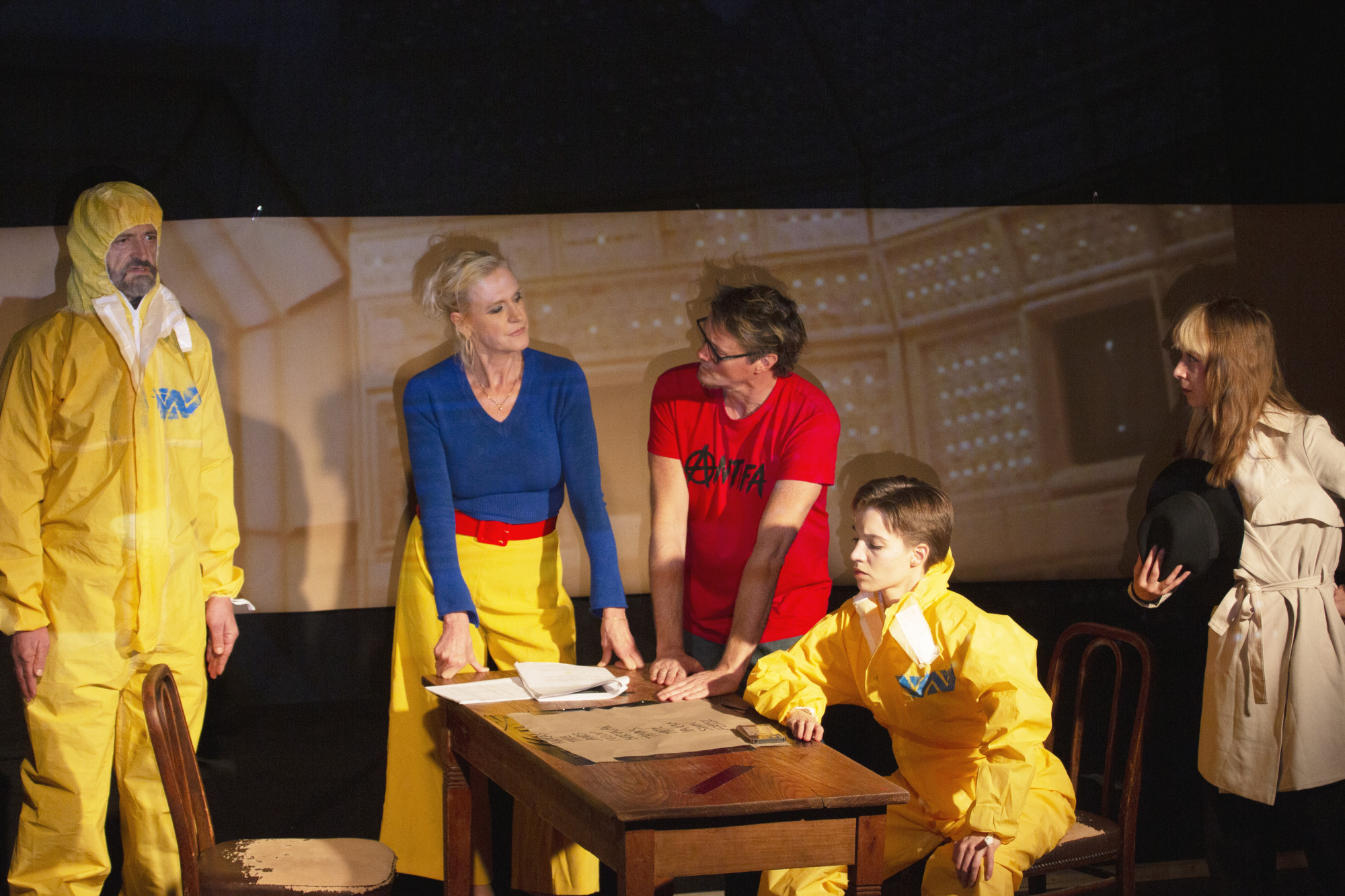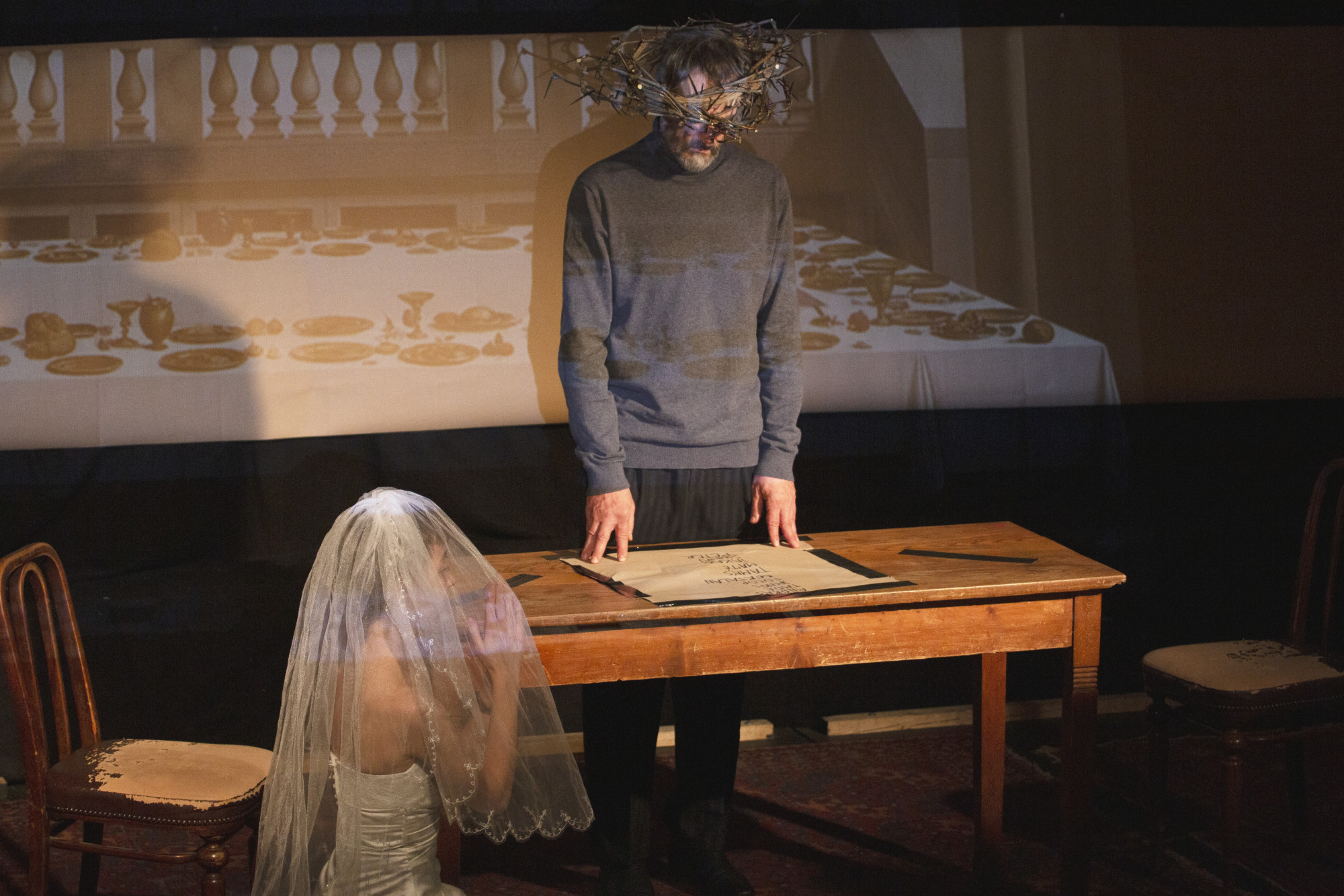 Aztán ott van a filmekben is izgalmas vallási szál: az előadás az utolsó vacsorával a háttérben nyit, ami például az Alien: Covenant prológusának is a címe, és ami visszatérő felvezető jelenete az összes Alien-filmnek. Az előadásban szereplő rendező több bibliai jelenetet is színpadra álmodik, mindig kicsit kiforgatva az alapsztorit. Az Alien-filmekből átemelt elemeke is így járnak, új életre kelnek az előadás szövetében.
