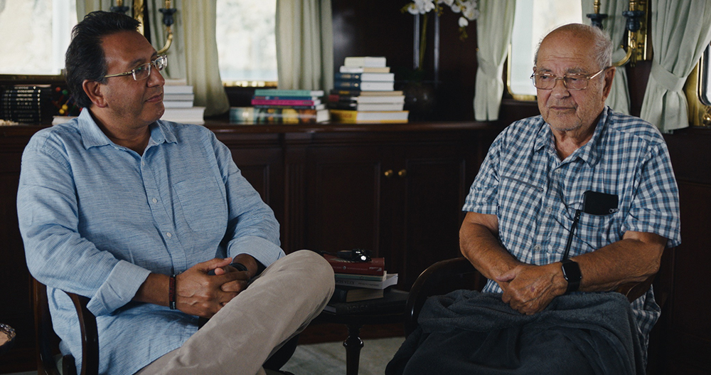 Dmitrij Zimin azonban csak az egyik főszereplője a Megszakadt kapcsolatnak: a másik nála három évtizeddel fiatalabb amerikai barátja és üzlettársa, Augie Fabela. Ő még nem tudja a forgatáskor, hogy Zimin azért hívja meg egy utolsó közös hajóútra 2021 őszén, mert véget tervez vetni az életének, viszont szívesen találkozik vele újra, és mivel elkíséri a kamera is, a hajóúton emlékeznek vissza a nagy közös kalandjukra, melynek révén megismerték egymást.